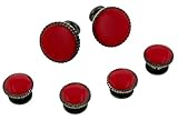 How cool is this set! A real retro look designed to give maximum punch to your tux. Darkened silver plated cufflinks and shirt stud formal set with a popping red enamel. The cufflinks measure 3/4 inch in diameter and the studs 1/2 inch. Presentation boxed. Made in the USA