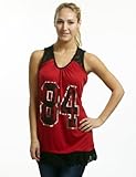 Spun Jersey varsity racer back tunic with lace top and hem and foil screen print