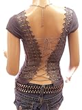 Patty Women Sexy Corset Embroidered Cap Sleeve Top Grey XL Reviews