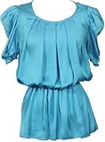 Satin Pullover Blouse Puff Sleeve Junior Plus Size, Large, Turquoise