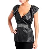 This super sexy organza style blouse has a plunging V neck with a generous ruffled collar. This has a beautifully crystal rhinestone embellished waist with ruching for added shaping. There are no sleeves and is a pull-over. 65% Rayon 35% Polyester Ultra Chic & Trendy Measures 24.5 inches from tip of shoulder to bottom edge of blouse. Measures 17 inches side to side at bust line (armpit to armpit), when flat. Item is sleeveless.