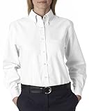 UltraClub Women's Button Down Long-Sleeve Dress Shirt, white, Small