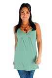 - Twisted bodice is enhanced by a gently pleated drape that gives a shirred effect. Sleeveless tunic has adjustable spaghetti straps